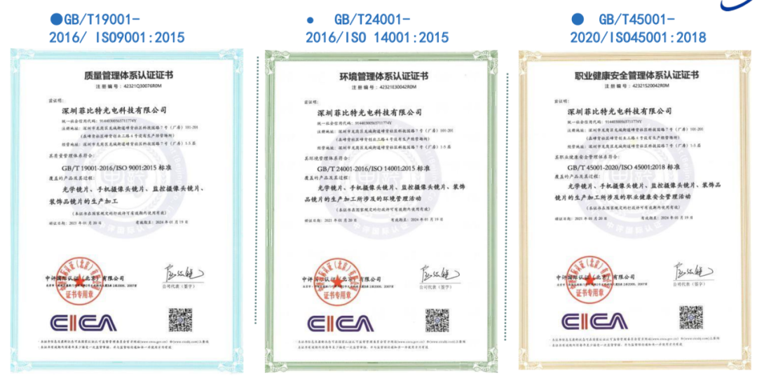 2010年,深圳菲比特正式走进光学玻璃、光学加工制造行列。从两台光学镀膜机器起步,到如今拥有300多台从开料到丝印、镀膜、检测等全制程设备,从几个人的小公司到如今近800人的规模,菲比特走了12年。这12年间,在董事长洪金木的带领下,菲比特不仅获得了多项体系认证,更荣获了诸多产品技术专利。成为国家高新技术企业、广东省“专精特新”企业、国内技术领先的光学器件制造企业。